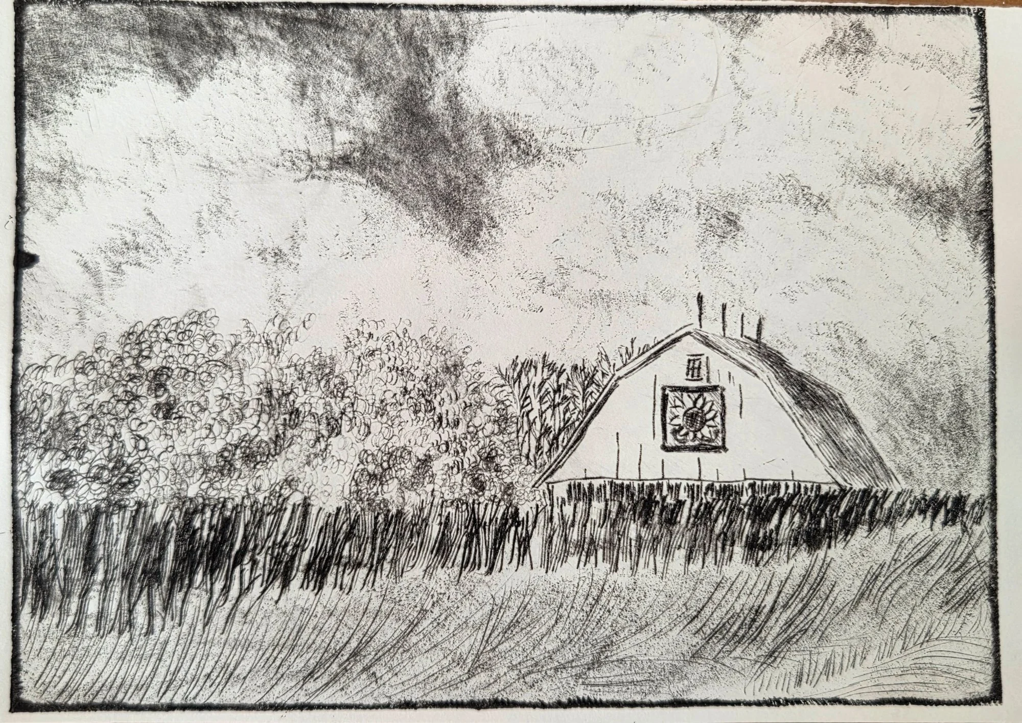 I’ve also been experimenting with new techniques in printmaking: Creating more detail in linocut, Chine Colle, and dry point on plastic.
