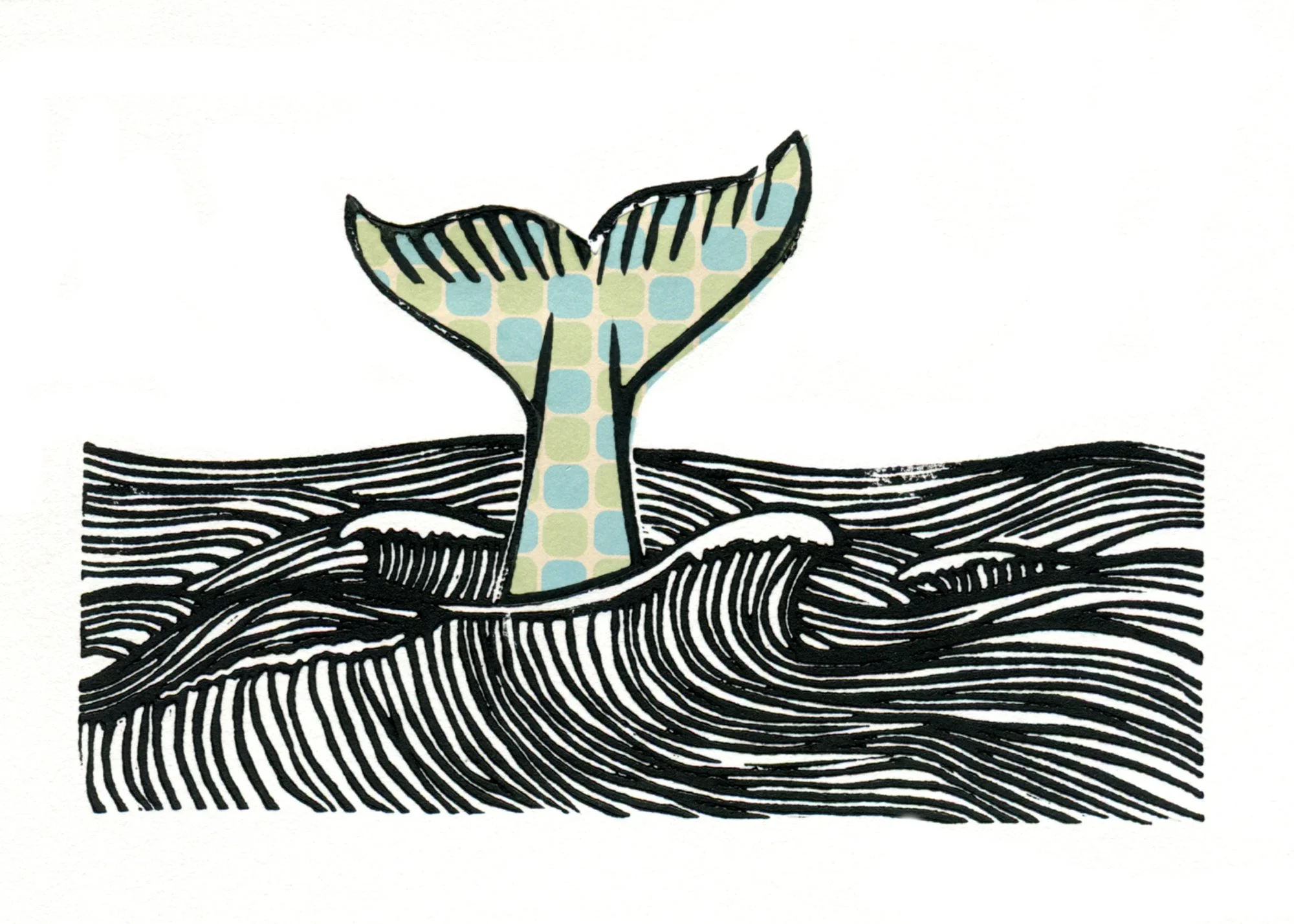 "Whale Tail" - Linocut with Chine-Colle